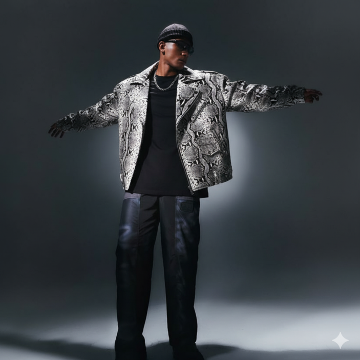 Affirmez votre style cet automne avec cette pièce tendance au motif serpent. Inspirée de l’univers moto et du streetwear chic, elle séduit par ses épaulettes structurées et son revers travaillé, qui sculptent la silhouette et apportent une touche de caractère.